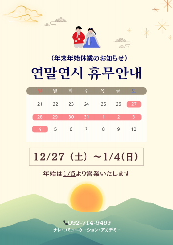 本年も多くの皆さまに韓国語学習をご受講いただき、誠にありがとうございました。