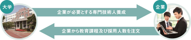 ・企業により教育課程や採用人数の注文を受け、それに合わせた専門技術者養成